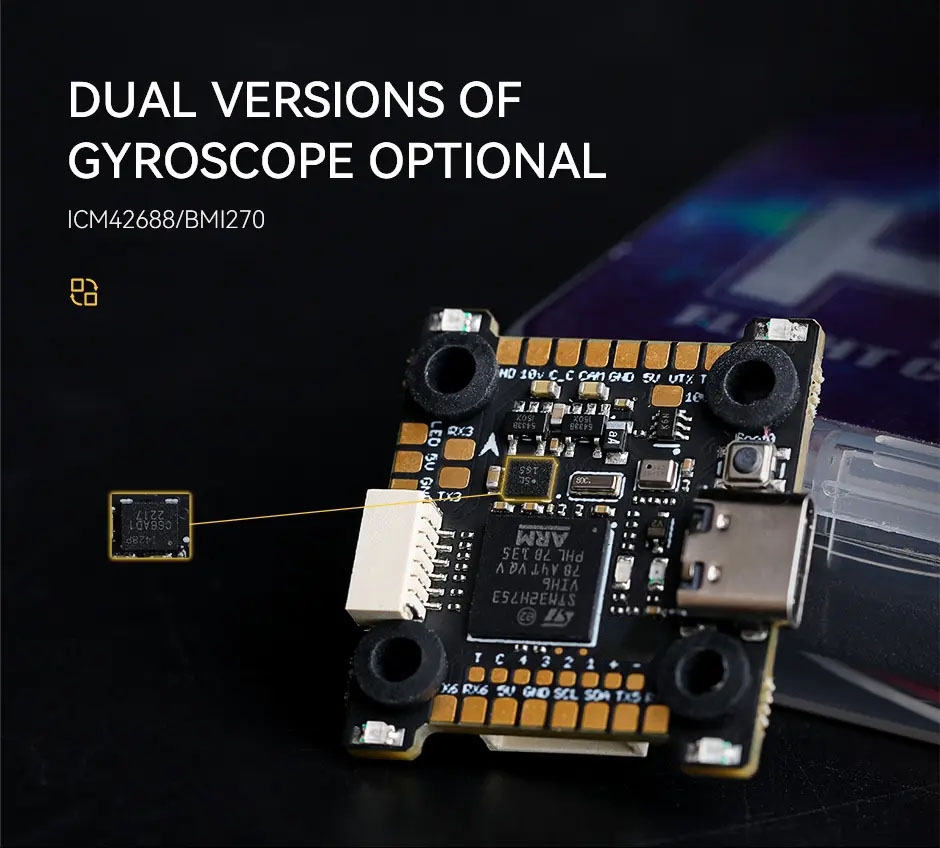• Гироскоп: На выбор ICM42688 или BMI270 с независимым источником питания.